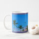 A tropical mug by the award-winning artist Paul McGehee. There you are at the end of a perfect beach day, looking skyward from your secluded place in the sand while listening to the soft sounds of the surf and feeling the warm breeze of the tropics. In the distance you hear the sound of a small plane approaching, then passing overhead into the twilight sky. The little plane soon disappears into the star-lined horizon, and it's just you and the surf again...and the occasional pelican or two hunting for their dinner at the shoreline. It's the stuff island memories are made of. Available in a variety of style and colour options.