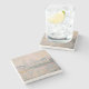 The coasters are gorgeous, a quality feel and heavy weight. They look like a precious archeological find. A rustic stone juxtaposed with a modern floral black and white print. I like the way the print goes slightly imperfect on the cut stone edges giving them a kind-of natural beauty.