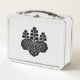 This is a standard metal lunchbox that appears to work just fine. We designed this box ourselves with an uploaded photo and custom text on the front and back. It looks absolutely beautiful except the front of the lunchbox is not centered like it shows in the photo. The print borders don't align with the inset flat part of the box where the preview photo online showed it perfectly centered in there. The back looks nice and centered though.