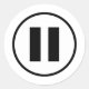 Round sticker with a black and white pause icon.