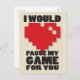 Pause My Game Gamer Nerdy Valentines Post Card - No need to reboot your love life as we have the ultimate Valentines day card just perfect for gamers. Featuring an illustration of a pixelated heart exactly like those you find in computer games with the message: "I would pause my game for you!" This is the ideal Valentines card for your geek better half. You'll definitely receive a level up with the special gamer in your life once you give this awesome card.