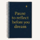 The quote “Pause to reflect before you dream” makes it the perfect companion for: