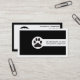 Black Vet/Veterinary Clinic, paw minimalist business card with qr code on the back that features a black paw on a white circle. Black background with white borders. The back includes a QR code for more info. A great design for veterinarians or pet clinic/hospital services.