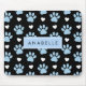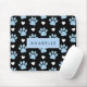 Paw Pattern, Blue Paws, White Hearts, Your Name Mouse Pad
