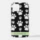 Paw Pattern, Dog Paws, Black and White, Your Name iPhone Case