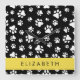 Paw Pattern, Dog Paws, Black and White, Your Name Square Wall Clock