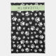 Paw Pattern, Dog Paws, Black and White, Your Name Tea Towel