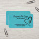 Black heart and pawprint on turquoise embossed pattern for pet grooming business.