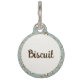 Pet tag with a personalised dog name monogram in a cute script font on the front with your address and phone number in a serif font on the back. The background on both sides is a pattern featuring ditsy paw print cookies and sugar dollops. Check out our store for more matching items from this collection.