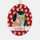 Create your own custom photo personalised pet photo ornament this holiday season. Features paw print pattern background.