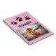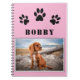 Paw Print Dog or Pet Photo and Name notebook. The notebook has three black paw prints, photo and a name - personalise the photo and the name with yours.