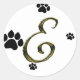 A sticker with a paw print monogram design. Designed by © KatiesKreations.