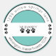 Paw Print Return Address Turquoise Classic Round Sticker