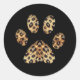 Paw Print with Gold & Black Leopard Sparkle Classic Round Sticker