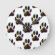 Paw Prints Confetti And Party Streamer Pattern Round Clock