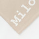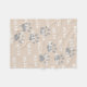 Dog blanket personalised with your pet's name on a cream background with paw prints in grey and the text in white.