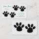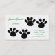 This fun business card is perfect for a dog groomer. It has a two sets of black paw prints on the front with green text. The back features a set of huge paw prints.