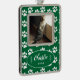 A green photo framed Christmas ornament with a paw print pattern . Choose your favourite cat's picture , add the name and year .