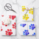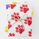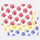 Artisan Paw Prints combo in red, blue, yellow on white background. Great Gift Wrap for ANY Pet lover, dog mum, cat lady, animal event, family pet, gifts. Modern, Colourful, Fun. Mix and match entire Pet Lover / Pets / Gift Wrap Collections by TMCdesigns.