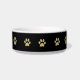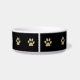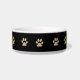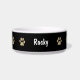 Paw prints small dog bowl with tan colour paw prints and black background and a place you can add your dogs name making this a classy pet bowl design. Use yours for a water dish, food dish, or catchall for all your doggy treats.