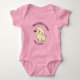 This is a perfect bodysuit for those new baby sisters out there. It features a cute and sweet, very little, yellow Lab puppy smiling and raising its paw up in the air. The text reads, "Paw-sitively Best Baby Sister" in black lettering against a pink background. This design also comes in a "baby brother" version and coordinates with a matching "best big sister/brother" design.
