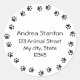 Address labels with a round border of black dog or cat paw prints. Customise with your personal contact information and use them as return address labels on the back of envelopes or on gift packages. Or stick them in books or on other belongings to identify them as yours.