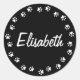 Name stickers featuring a white pawprint border on a black background and customisable name or text. Simple yet elegant design.