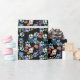 Black background with multiple coloured and sized pet pawprints everywhere. Art by Melissa J Barrett