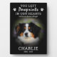 A pet memorial plaque that reads the sweet saying 'you left pawprints in our hearts and we are forever changed'. This plaque features a round soft edged frame for the photo of your beloved pet, their name, dates and pawprints. A wonderful gift or keepsake for anybody who has loved and lost a pet.