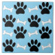 Paws And Bones Seamless Pattern Custom Blue Ceramic Tile
