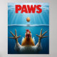 Get ready to laugh out loud with this PAWS parody design! A hysterical twist on the classic Jaws movie poster, this version features a wide-eyed chicken underwater reaching towards a floating egg — complete with the iconic red “PAWS” header.