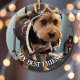 This cute memorial ornament is a heartfelt tribute to honor the memory of your beloved dog or pet. Losing a pet is like losing a family member, and this beautiful photo ornament is designed to keep their spirit close. Personalize the front with a photo of your pet. The bottom has the touching phrase "Paws in Our Hearts, Forever Missed." Personalize the bottom text with your pet's name and their years. Flip over in the back to personalize ornament with another favorite photo of your pet. The bottom is adorned with the text 'My Best Friend'. This ornament serves as a daily reminder of the unconditional love and joy your pet brought into your life.