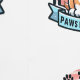 Turn your walls into a bold and heartwarming statement with the Paws Pefople wallpaper. This eye-catching design features a loveable cartoon dog sitting proudly in front of playful human silhouettes, framed by paw prints and a retro sunset backdrop—capturing the fun idea that pets and people truly belong side by side.