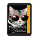 This playful image features a stylish cat wearing orange-framed glasses, divided into a striking black and yellow background. The bold text "Pawsitively Fabulous" adds a touch of fun, making this piece perfect for greeting cards, posters, or quirky decor. The cat's ears poke out from the top, adding a touch of whimsy to this vibrant and artistic representation.