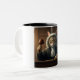 This two-tone ceramic mug features a whimsical illustration of a cat judge, ready to dispense justice with a serious expression.