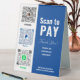 Add your own QR Codes for Venmo, PayPal, or Cash App payments. Digital payment systems have made paying at craft shows, popups, and Farmers Markets so much easier. Scanning a QR code allows people to pay for goods and services through a digital wallet when they have run out of cash. Customers scan your PayPal QR code and transfer money right into your account. Safe and secure. This pay-here sign is a must for your small business.   Customise with your business name and even remind them to as for a review on social media. Available in multiple colours for your business branding.