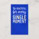Spread kindness with this elegant “Pay It Forward” business card. The front features deep royal blue faux glitter and inspiring white text: “be grateful for every single moment.” The back shares a message of compassion and encouragement in matching blue script and block font. A perfect way to pass on a random act of kindness and inspire gratitude.