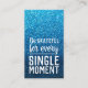 Spread kindness with this pretty “Pay It Forward” business card. The front features aqua blue faux glitter and inspiring white text: “be grateful for every single moment.” The back shares a message of compassion and encouragement in matching blue colored fonts. A beautiful way to pass on kindness and inspire gratitude in your community.