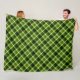 A large sized fleece blanket featuring a beautiful diagonal plaid pattern design in pea green.