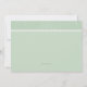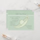 A sweet invitation, in a soft green colour, featuring one pea in a pod. The top border has a baby paisley patter and a white, scalloped trim.