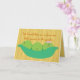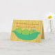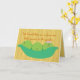 Cute triplet baby peas sit nestled into an open pea pod on top of a striped yellow background. The girl with her pink bow, eyelashes, blushing cheeks and one tiny tooth and the boys with their noses poking out over the edge make them especially adorable. The cover text says: "We heard there is a few new little sprouts in the garden" and the inside text reads: "Congratulations on your new triplet babies!" Customisable! Don't like the background colour inside the card, font style, or font colour? Click on the "Customise It" button to change. The striped background is also removable. Check out our other Pea Pod Pals, and New Baby products too. Want this design on something else? Just ask!