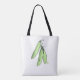 This bag features three illustrated pea pods, and is printed on front and back. It is part of a set of vegetable themed bags, including ugly fruit, and bittermelon. These bags are sure get comments and compliments.