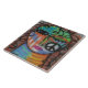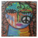 My funky abstract acrylic painting on OSB of a woman with a peace sign on her cheek printed on ceramic tile