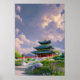 A charming Japanese temple rises in defiance of the stormy clouds above, tucked among bright blooms and beautiful grass. It emits a sense of tranquillity and peace in its silence, a reminder that amidst the craziness of the world, there are moments of peace and beauty. This digital artwork captures the essence of such times, encouraging the observer to revel in its simple yet powerful message.