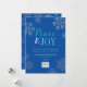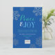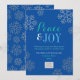 Modern and colourful corporate holiday greeting card features custom Peace & Joy text, a seasonal message, and a company logo that can be fully personalised for your business. A pattern of platinum grey coloured snowflakes provide accent this modern seasonal design in vibrant wintery shades of royal blue, mint green, and white - which can all be modified.