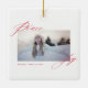 Peace And Joy Modern Calligraphy Red Script Photo Christmas Ornament.