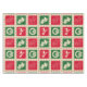 Christmas design with Christmas symbols in colourful squares and with snowflakes decoration