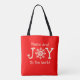 Simple and modern Peace and Joy to the World spelled with a snowflake. A festive tote bag design for the holiday season.