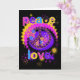 Promote peace and love and enjoy the bright, hot colours at the same time with our Peace and Love greeting card with peace symbol, flowers, and lots of bright colours on a black background!