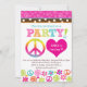 Bright, funky, colourful and fun "Peace & Love" hippie theme party invitation. Perfect for any age or any celebration with a groovy, peace hearts and flowers theme!